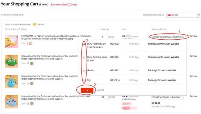 In your shopping cart, you can choose the mode of transportation (as shown in the figure):