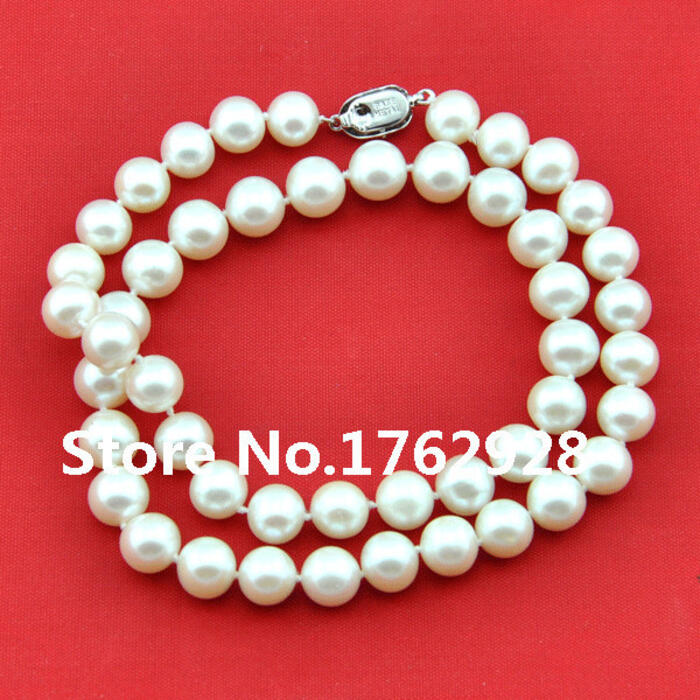 Fine or Fashion:Fashion Item Type:Necklaces Necklace Type:Chokers Necklaces Pearl Shape:Perfectly Round Length:about 45cm Metals Type:Platinum Plated Shapepattern:Round Gender:Women Style:Classic Pendant Size:8.5mm-9mm Material:Pearl Quality:100% Natural Pearl Skin:Flawless Pearl Luster:Highlight Main Color:white Chain Type:Rope Chain is_customized:Yes Pearl Type:Freshwater Pearls 100% Natural Freshwater Pearls Chain Size :18inch —- 45cm Bead Size :8.5-9mm ;Free Send Box