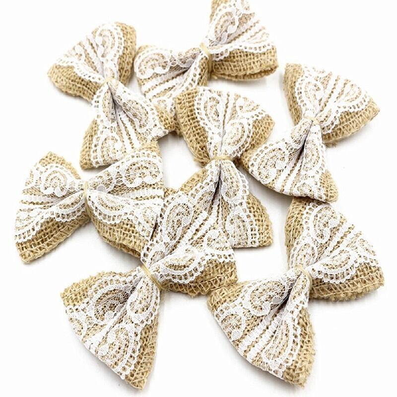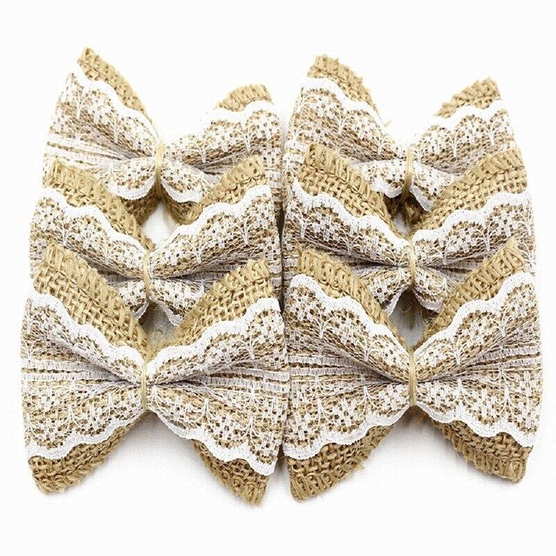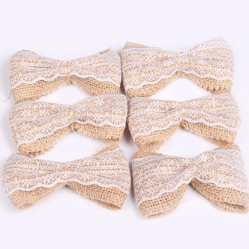 White Natural Jute Burlap Hessian Bowknot Bows Hat Accessories Craft Rustic Wedding decoration supplier Craft DecorMaterial: 100% natural jute hessian BurlapSize: 8cm * 6cm(L*W)Quantity: 10pcs / lot