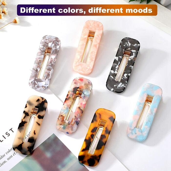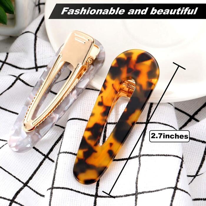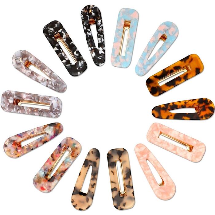 Quality:made of acrylic resin and alloy,alligator hair clips are study and not easy to get broken,well made surface with smooth edges is curvy and comfortable to wearElegant,retro:leopard print features and eye-catching,some light blue with pink hair clips look sweet and gentle,black with white ones are classic and retro,here are more colors design as picture shown meeting your needsGifts for women and girls:hair barrettes,different shape and various color design caters to most people s taste,they will be cute small gifts to women or girlsNice hair accessories:clip it on hair,choose a dress,if you want to have leisure style,with t-shirt,this little accessories will make you daily look or party appearance attractiveColor:picture colorMaterial:Acrylic +AlloySize about:6.5-6.9cmPackage Contents:14 Pieces * hairOnly the above package content, other products are not included.Note: Light shooting and different displays may cause the color of the item in the picture a little different from the real thing. The measurement allowed error is +/- 1-3cm.