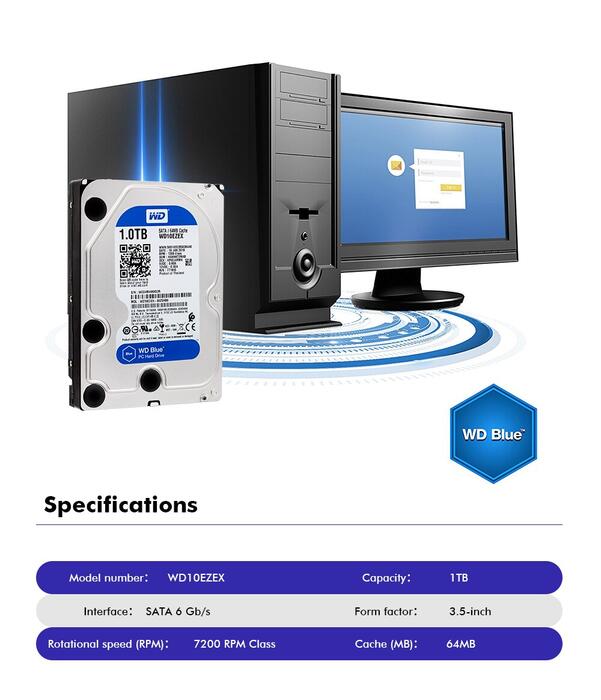 HomeComputer Office SecurityStorage DevicesExternal Hard Drives1TB WD Blue 35 SATA3 Desktop hdd 6 GBs HDD sata internal hard disk 64M 7200PPM hard drive desktop hdd for PC WD10EZEX
