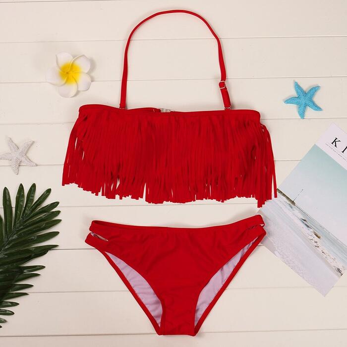 Women Push-Up Padded Bra Beach Bikini Set Swimsuit Sexy Tassel Swimwear