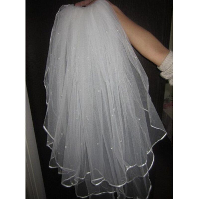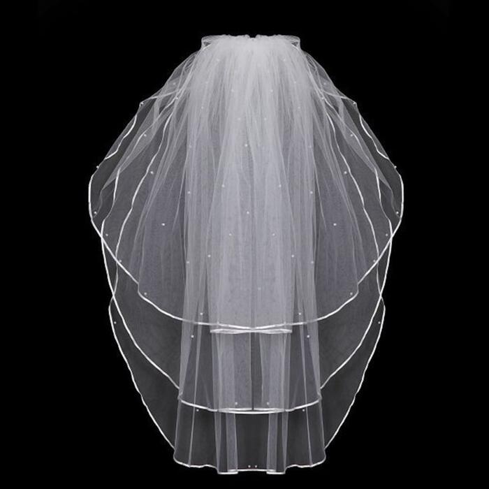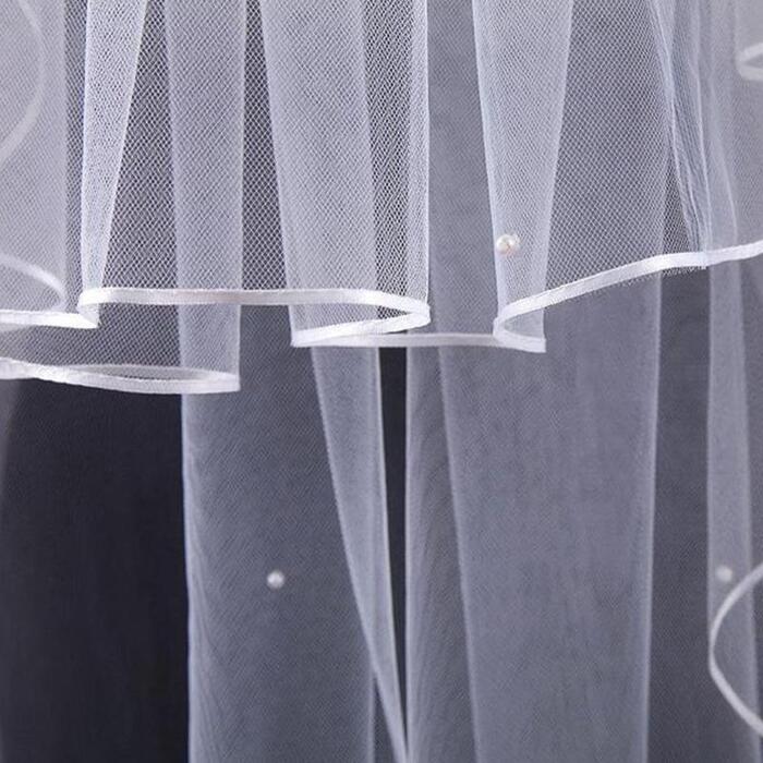 Very beautiful quality made with romantic 3 veil layer, ribbon edge, faux pearl embellishment.