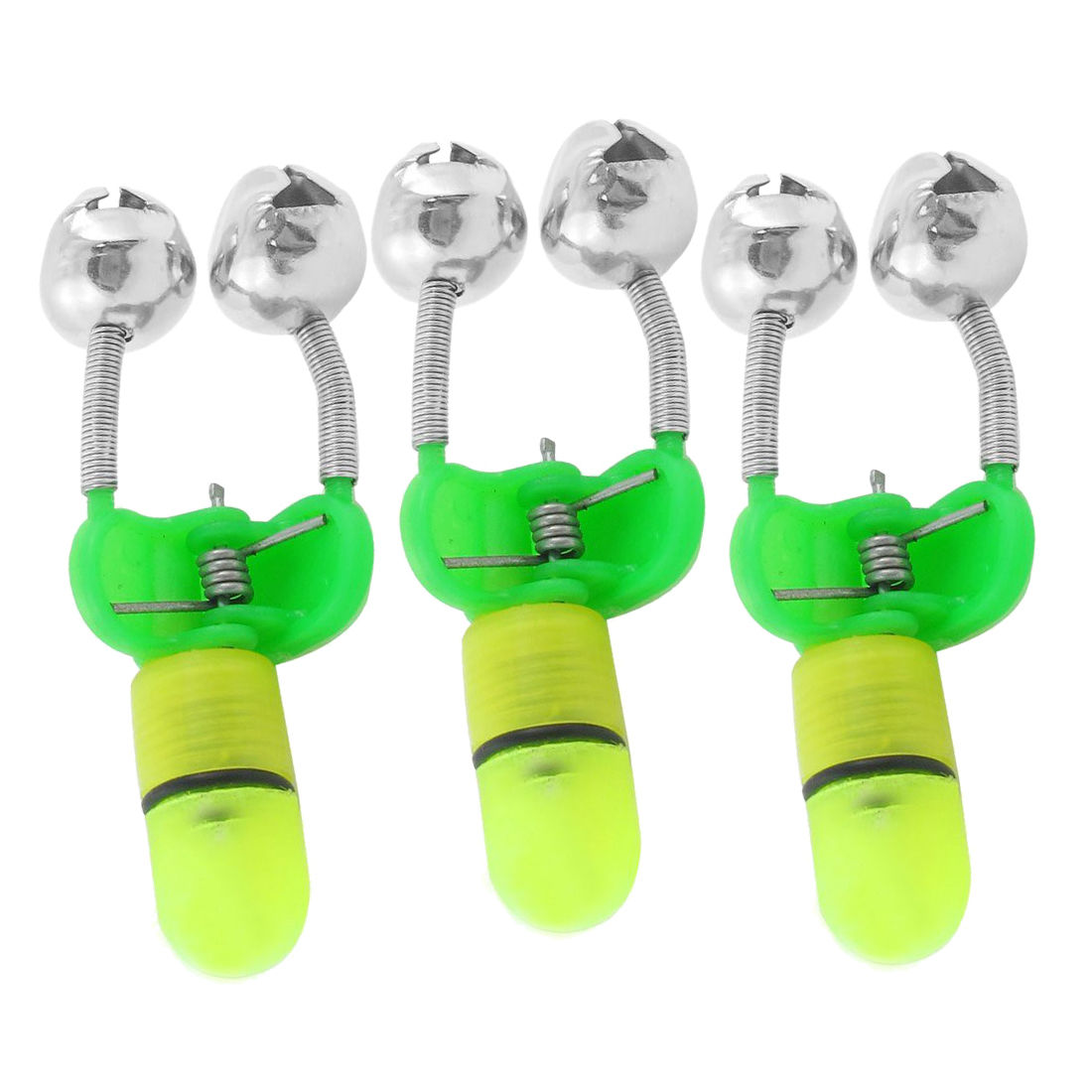 Product Name: Fishing Alarm BellTotal length: 7.5 cmClip size: 2,8 x 2,5 cm (L * H)Lamp light color: blueBell size: 3 x 1.5 cm (L * D)Lamp size: 3 X1. 3 cm (H * D)Net weight: 36 gMain material: plastic, metalMain color: green, yellow green, silver tonePackage: 3 x fishing alarm bellsOnly the above package content, other products are not included.Note: Light shooting and different displays may cause the color of the item in the picture a little different from the real thing. The measurement allowed error is +/- 1-3cm.