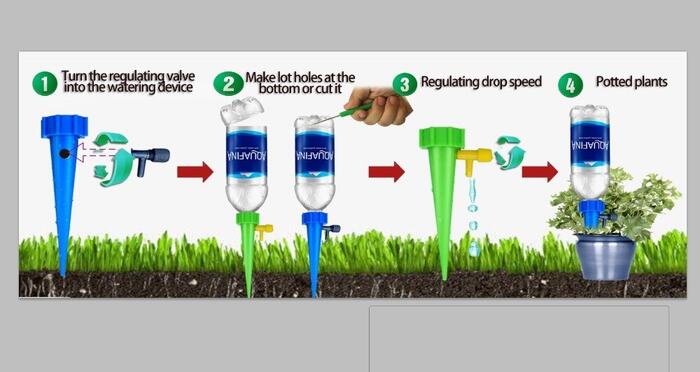 Feature 1 : Flow rate control, plant watering device with control valve can control drip speed 0-60s / 1 drip, release lasts drip for 1-15 days;