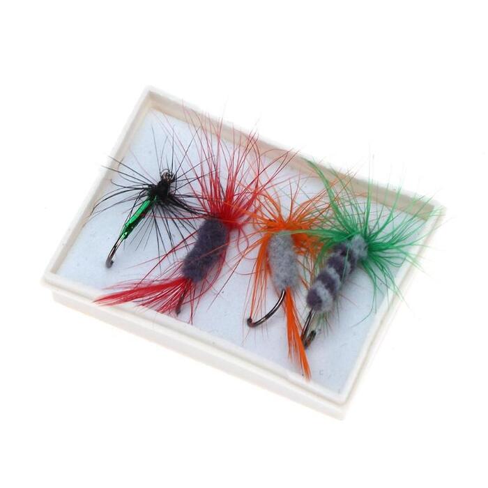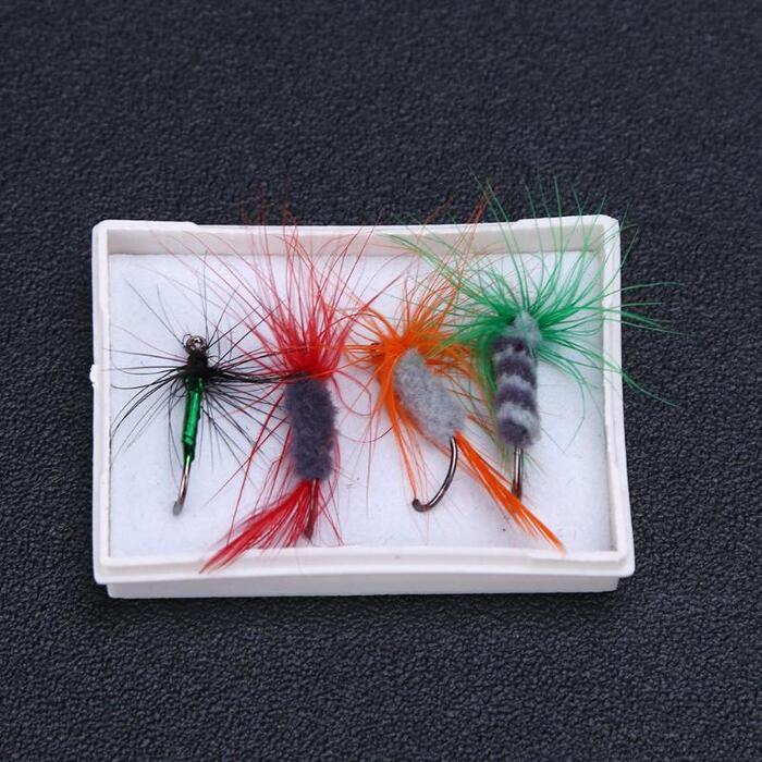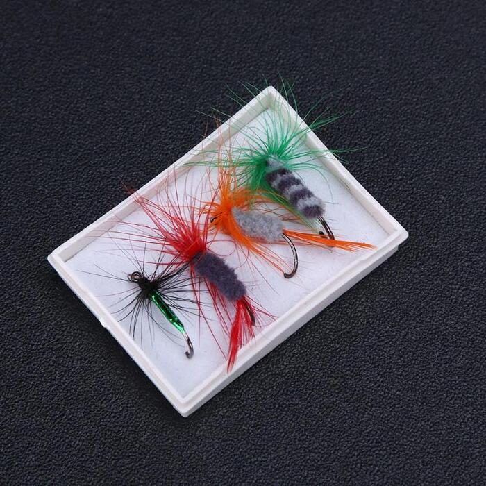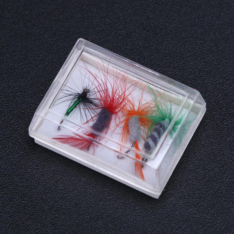 HomeSports OutdoorsFishingFishing Lures2019 4pcs Insect Fly Style Fishing Lures Artificial Bait Feather Lures Fly Fishing Hooks Tackle with Fishing Case Box Pesca Lure