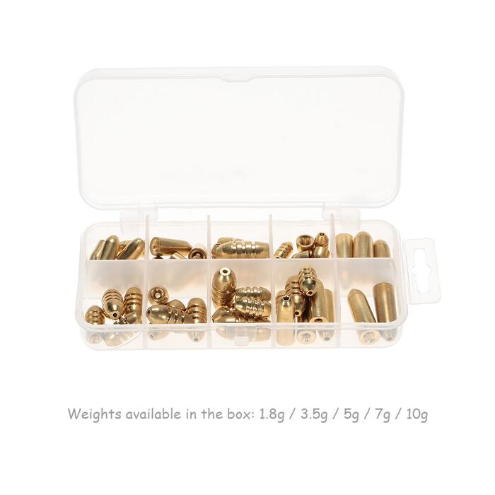 New 50pcs 1.8/3.5/5/7/10g Weight Assorted Copper Sinker Kit Fishing Tackle Sinkers in A Box Case