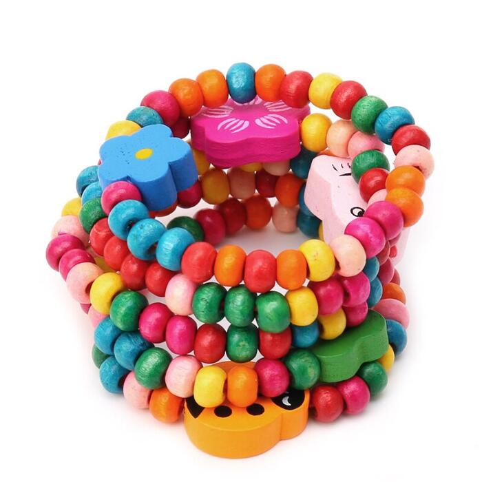 5Pc Lovely Kids Children Wood Elastic Bead Bracelets Birthday Party Jewelry Gift