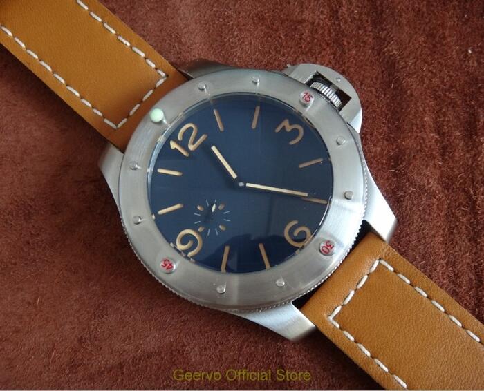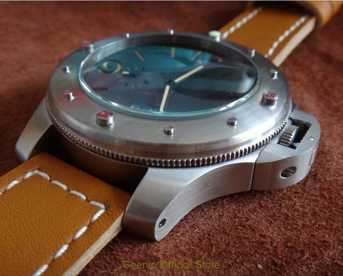 60mm big black dial GEERVO Asian 6497 17 jewels Mechanical Hand Wind movement mens watch luminous Mechanical Wristwatches121a - Image 7