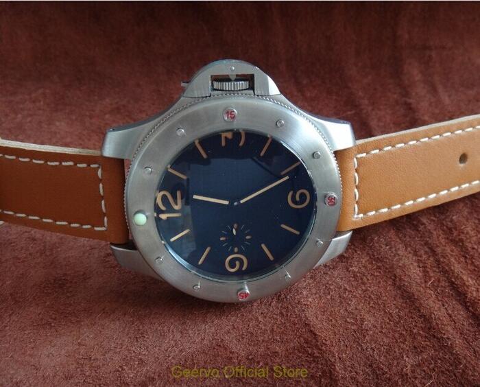60mm big black dial GEERVO Asian 6497 17 jewels Mechanical Hand Wind movement mens watch luminous Mechanical Wristwatches121a - Image 6