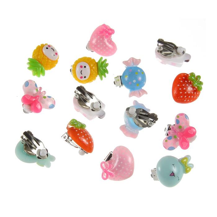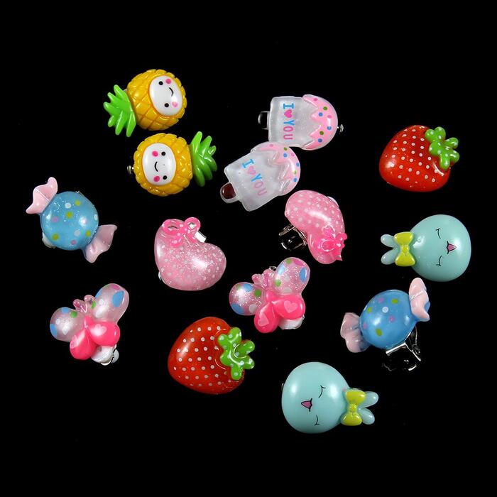 7pair Cute Cartoon animal fruit ice cream Ear Clips Children Clip Earrings Girl Resin no Piercing earring for children kids