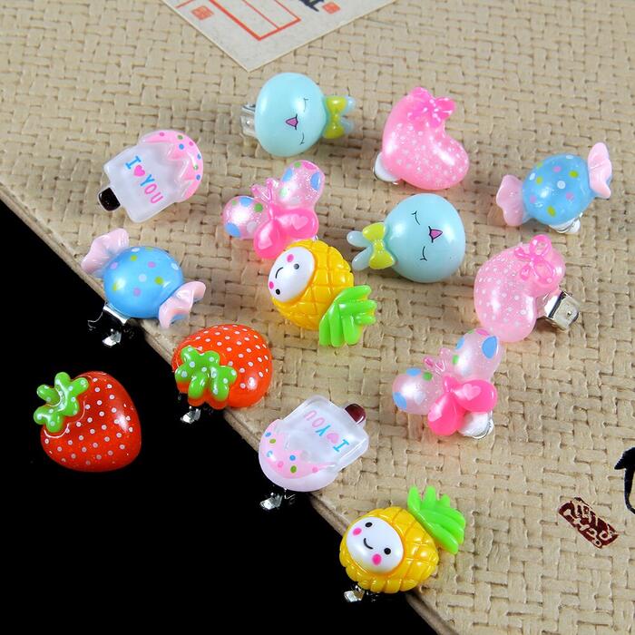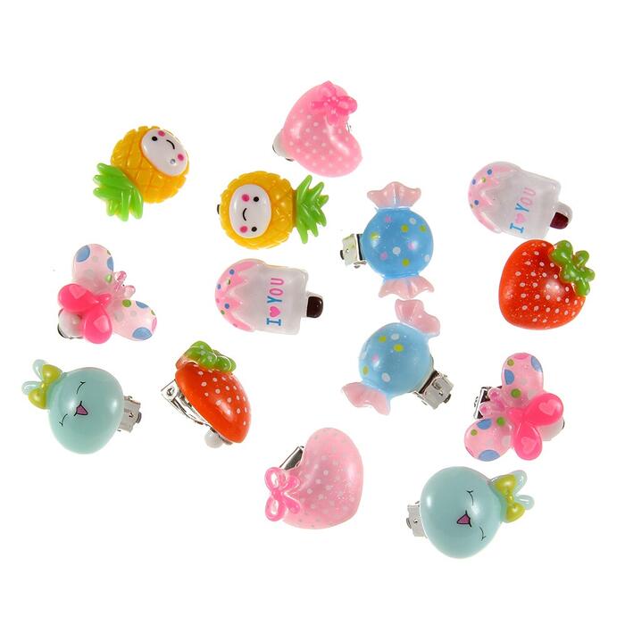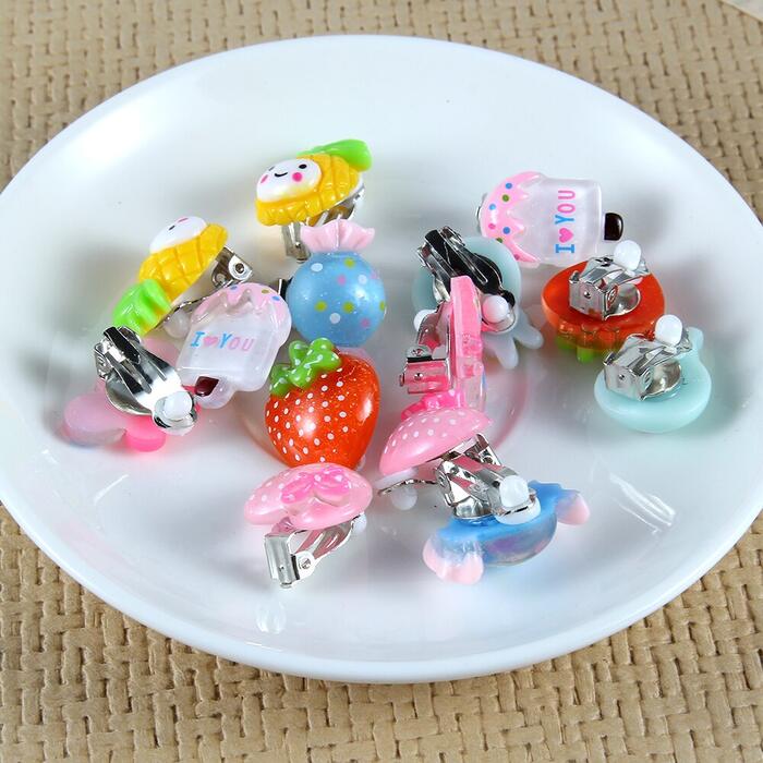 7/pair Cute Cartoon animal / fruit / ice cream Ear Clips Children Clip Earrings Girl Resin no Piercing earring for children kids