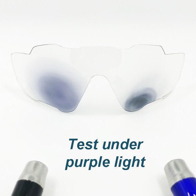 Remarks: the lens only changes color under Ultraviolet or purple light, if you use Incandescent lamp light to test, it is the wrong way to test, and it will not change color at all.