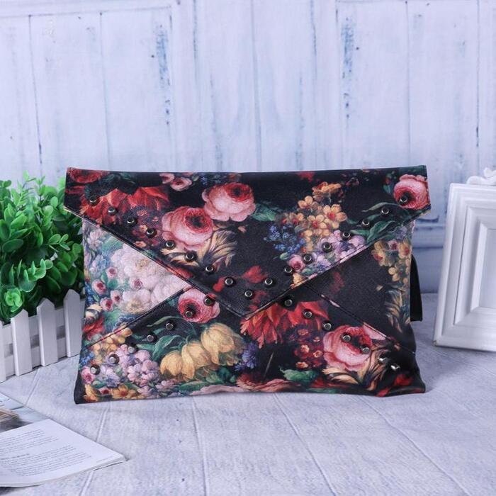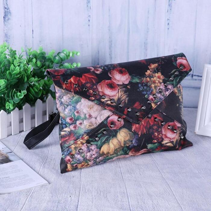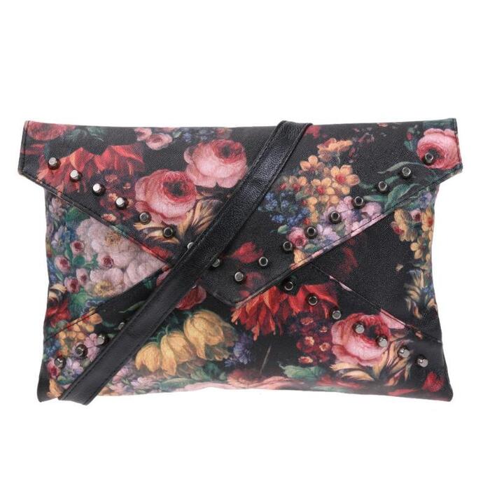 Flower Pattern Clutch Oil Painting Women hand bags crossbody shoulder bags Women Envelope Rivets Bag Handbag Clutch bolsos mujer