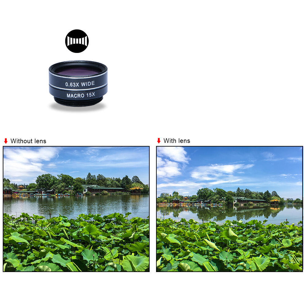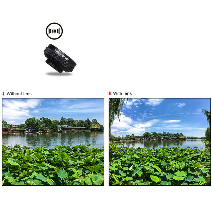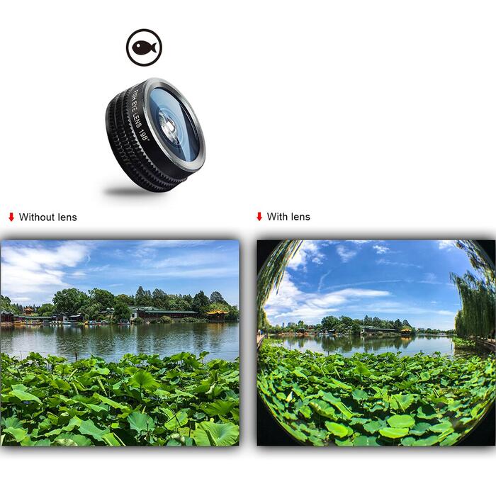 Features: This is a 7 in 1 camera lens kit, with 7 different lenses Portable and detachable Works with most types of mobile phones no bigger than 13 mm diameter 0.36X super wide lens: Angle: 145 degree Magnification: 0.36X Lens construction: 3 elements in 3 groups Max diameter: 25 mm Length: 15 mm 198° fisheye lens: Angle: 198 degrees Magnification: 0.28X Lens construction: 3 elements in 3 groups Max diameter: 25 mm Length: 15 mm 0.63X wide angle lens: Magnification: 0.63X Lens construction: 2 elements in 2 groups Max diameter: 20 mm Length: 5 mm Full screen, nearly no dark circle 15X Macro lens: Magnification: 15X Lens Construction: 1 element in 1 group Max diameter: 20 mm Length: 6 mm The shot distance is between 10~23 mm Note: when you receive, the wide angle lens and macro lens are screwed together. 2X telescope lens: Magnification: 2X Lens construction: 2 elements in 1 group Max diameter: 20 mm Length: 11 mm CPL lens: Lens construction: 2 elements in 2 groups Max diameter: 20 mm Length: 8 mm Kaleidoscope lens: Lens construction: 1 element in 1 group Max Diameter: 20 mm Length: 8 mm Package includes: Fish eye lens x 1 Wide angle (macro lens) x 1 Wide angle lens = Wide lens + marco lens 2X telescope lens x 1 Super wide x 1 CPL x 1 Kaleidoscope lens x 1 Lens Cap x 4 Universal clip x 1 EVA bag x 1 Cleaning cloth x 1 User manual x 1 Retail box x 1