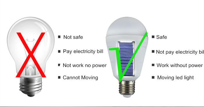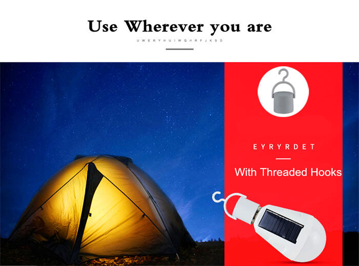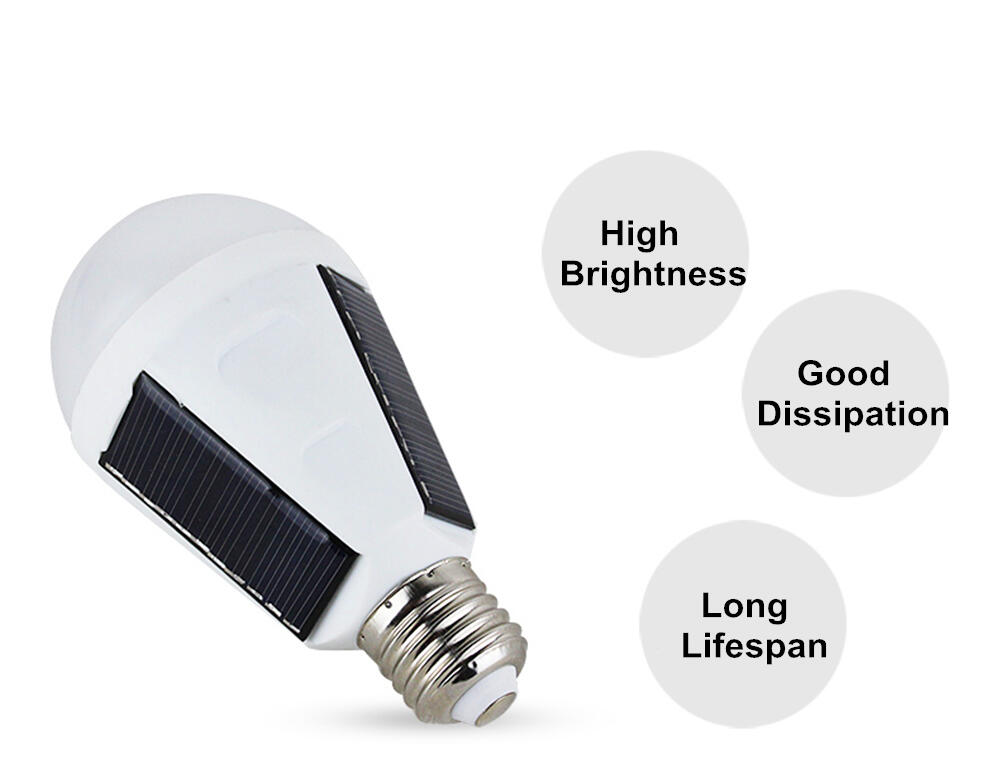 2)Bright portable outdoor solar light bulb with built-in 3pcs Inner Solar Panels, High Lumens LEDs and a 1200mAh Lithium battery.