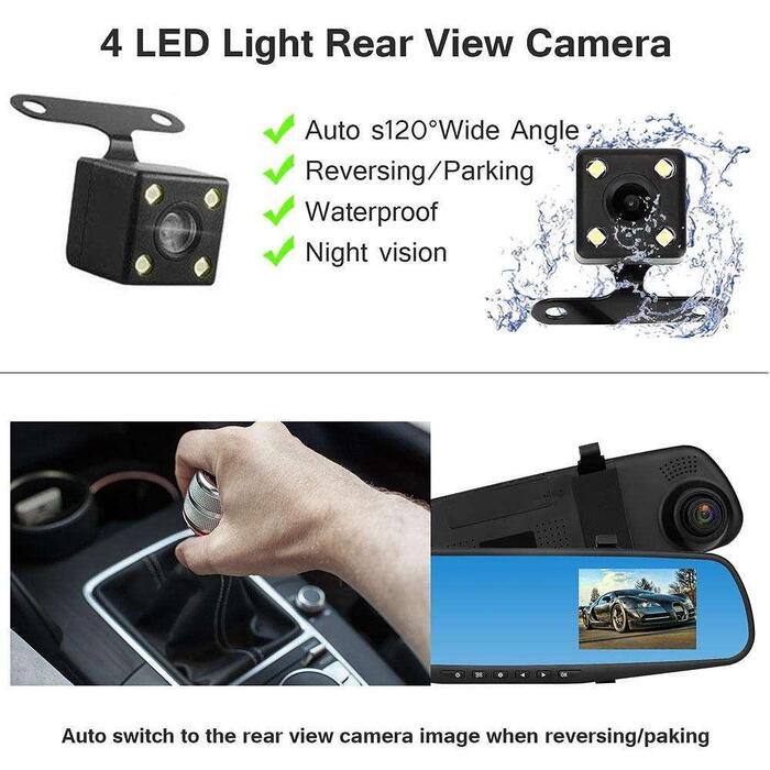 Package Included: 1 x Dash Camera Digital Video Recorder 1 x Car Charger 1 x Back car camera 1 x Support