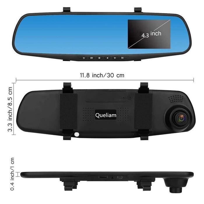 Specification: Features:170 Degress Wide Angle, FUll HD 1080p G-Sensor:Built-in Screen Size:4.3″ TFT Camera Lens: CH1 ( Front ):170degrees CH2 ( Rear ):140degrees Language:Multi Language File Format:AVI Video Resolution: CH1 ( Front ):1920*1080p ( 30FPS ) CH2 ( Rear ):CVBS, 720*480 ( 30FRS ) Video Format:H.264 Loop Video:Support ( Seamless Loop Video, No Leakage ) Car Switch Machine:Support Motion Detection:Support Date and Time:Support Photo Resolution:1M(1280X960), 2MHD(1920X1080), 5M(2592X1944), 8M(3264X2448) Photo Format:JPEG Memory Card:Micro SD/TF Card Support up to 32GB ( NOT Included ), high speed card recommended. Microphone / Speaker:Built – in Parking Monitor:Support White Balance:Auto/Daylight/Cloudy/Tungten/Flourescent Contrast:1/2/3/4/5 Exposure:Support Fill LIght:Support Current Frequenzy:50GHZ/ 60GHZ USB Function:1 : Back_camera, 2: PC_ date Power Interface: 12-24V 2A Battery:Built – in 450mAh Charger Cable: 3.2M (10.5ft) Rearview Camera Cable: 6M (19.7ft)