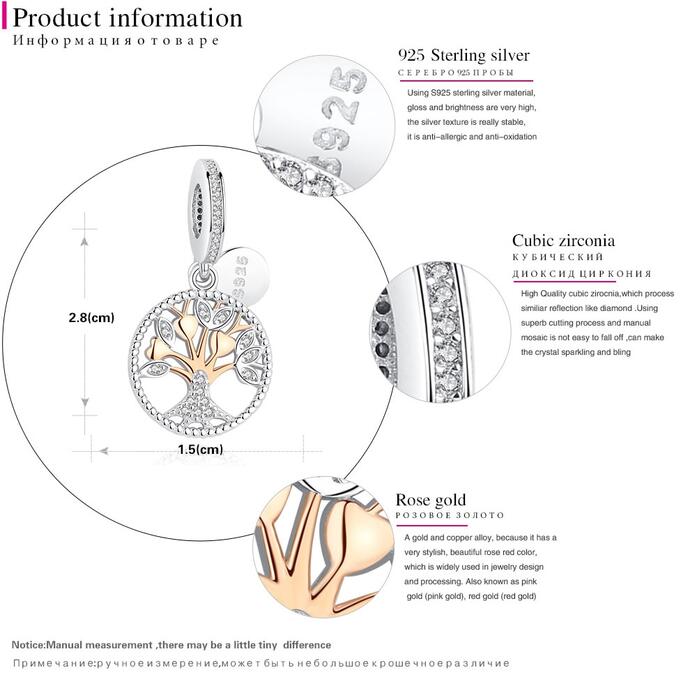 Name: Authentic 925 Sterling Silver Family Tree Dangle Charm Beads Fit Original Charm Bracelet Jewelry