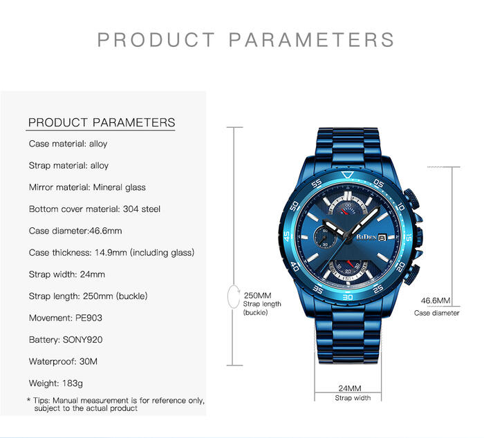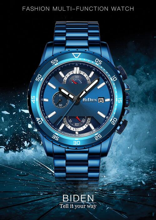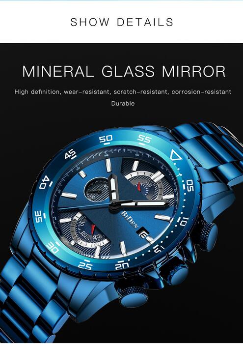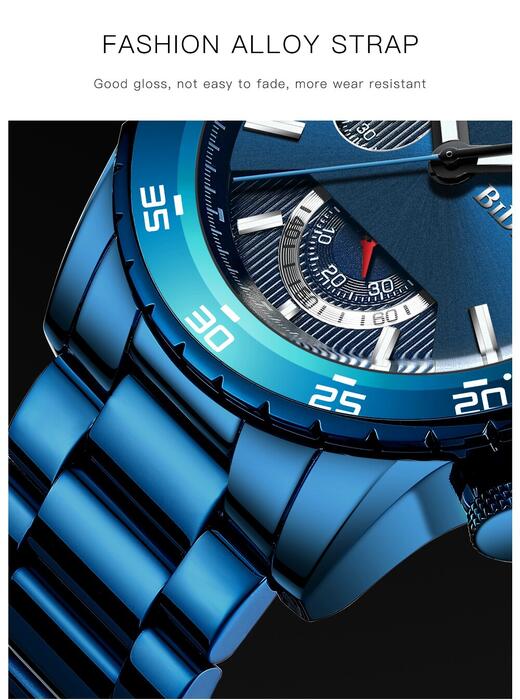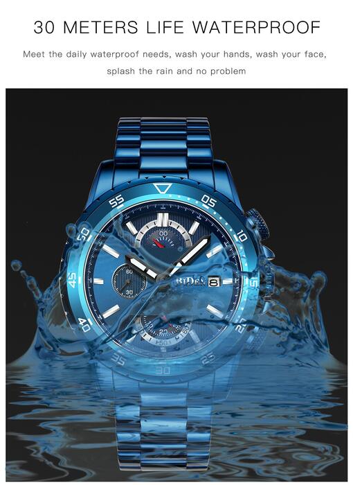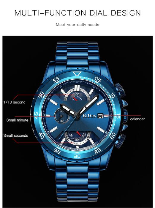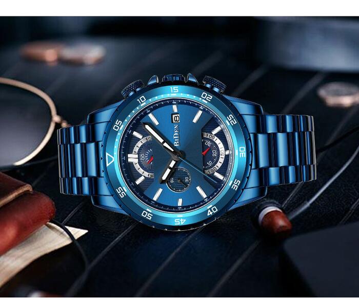 1 review for Luxury Fashion Mens Watches Top Brand Date Week Sports Male Clock Royal Blue Full Steel Military Waterproof Quartz Wrist Watch