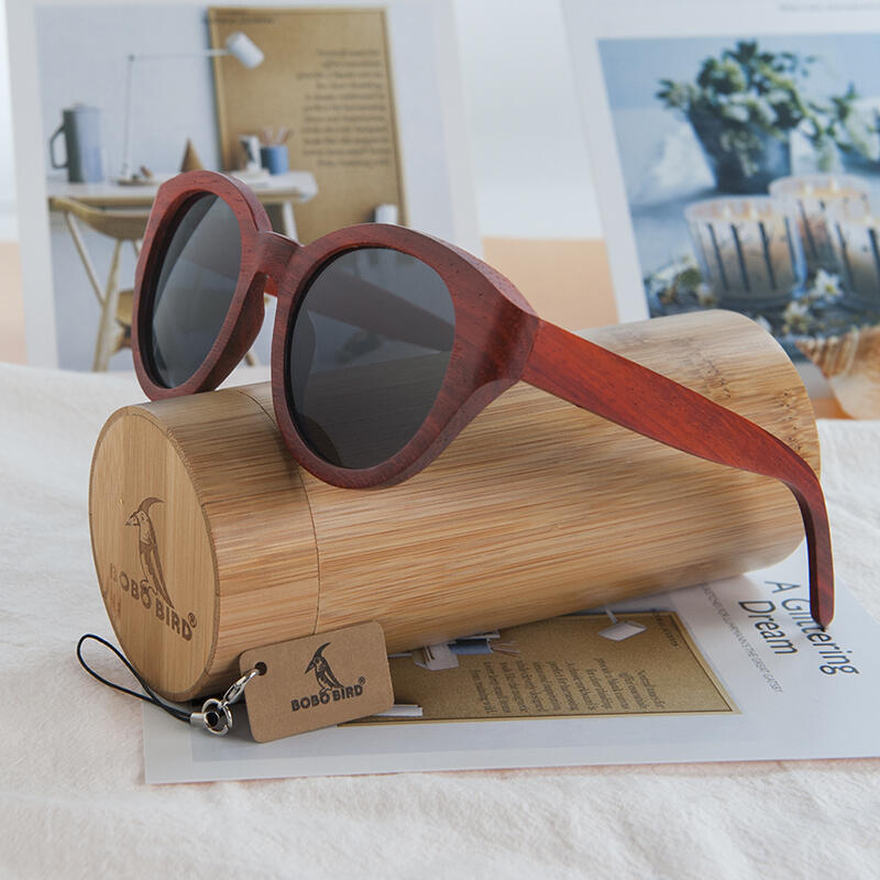 BOBO BIRD New Red Wood Wood Sunglasses Women Wooden Sun glasses for Ladies With Bamboo Box