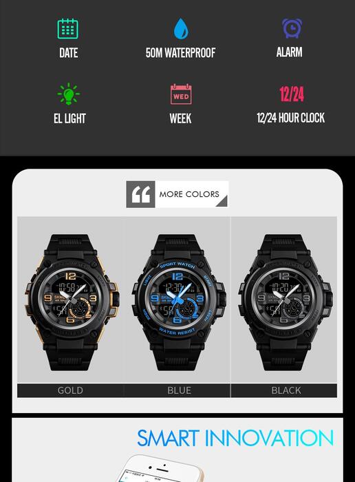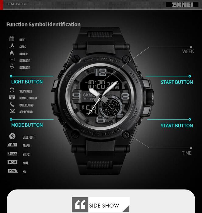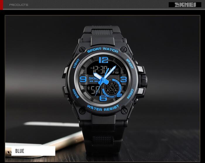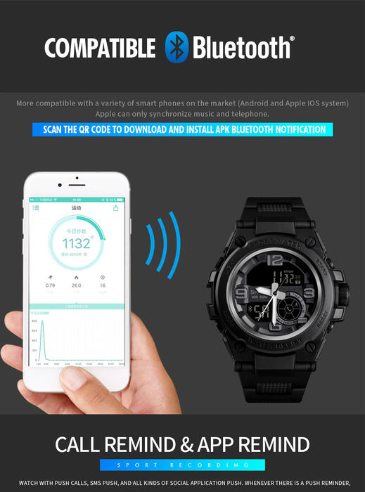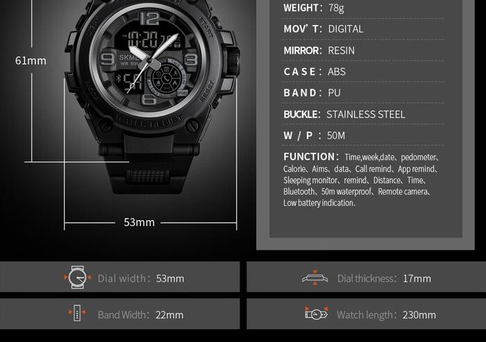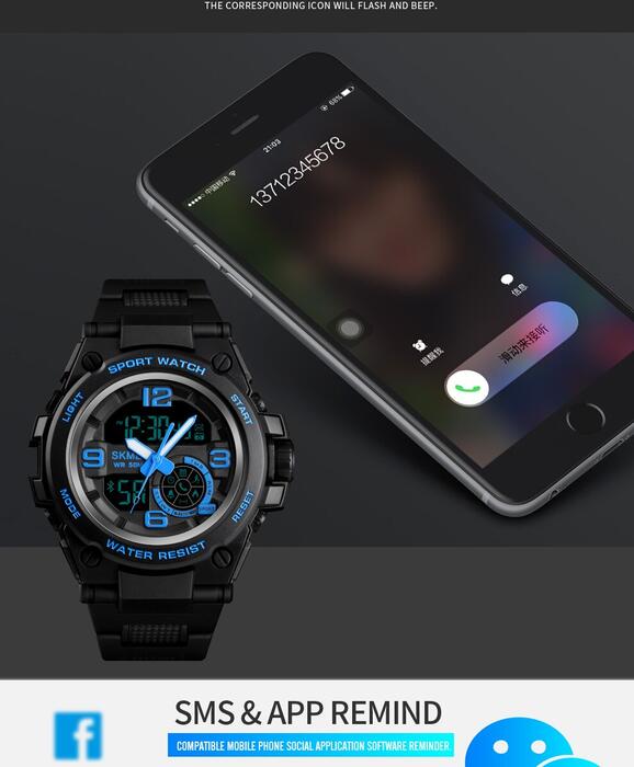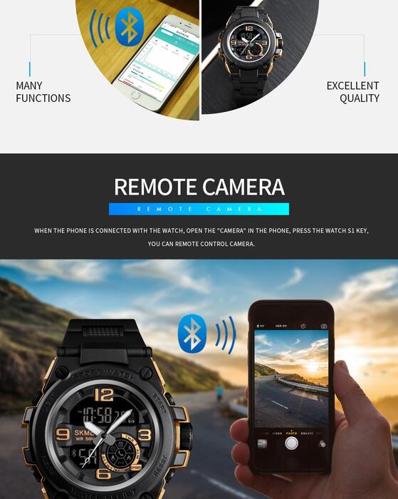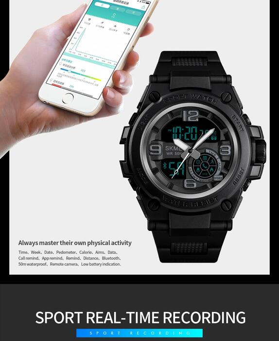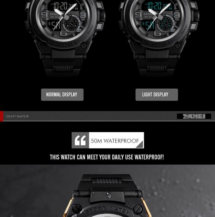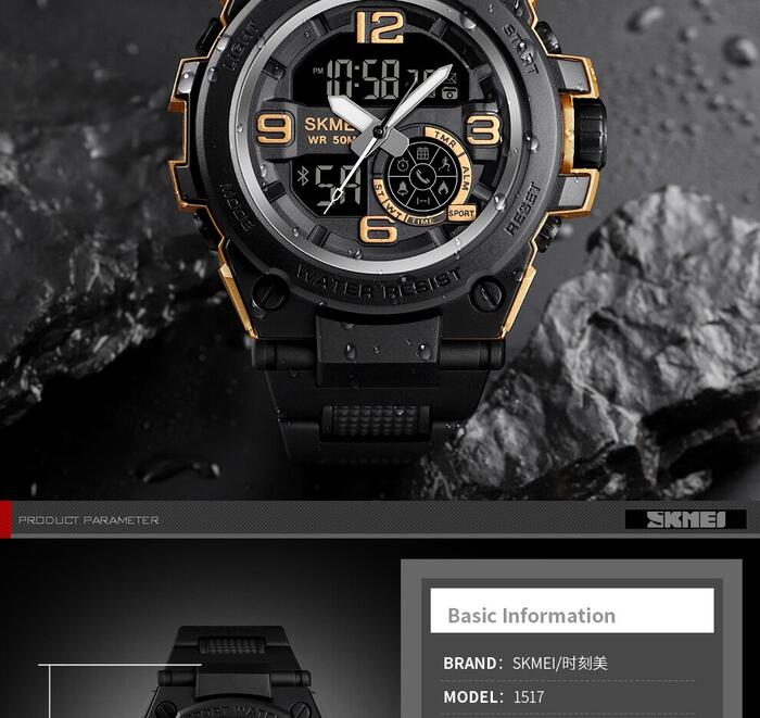 HomeJewelry WatchesMens WatchesDual Display WatchesSKMEI Fashion Sport Watch Men Bluetooth Multifunction Digital Watches 5Bar Waterproof Men Smart Dual Display Watch reloj 1517