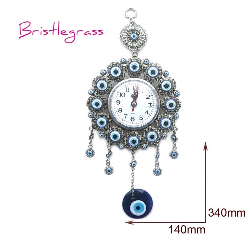 BRISTLEGRASS Turkish Nazar Blue Evil Eye Quartz Wall Clock Hanging Pendants Amulets Lucky Charms Blessing Protections Home Decor