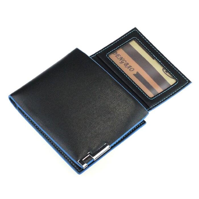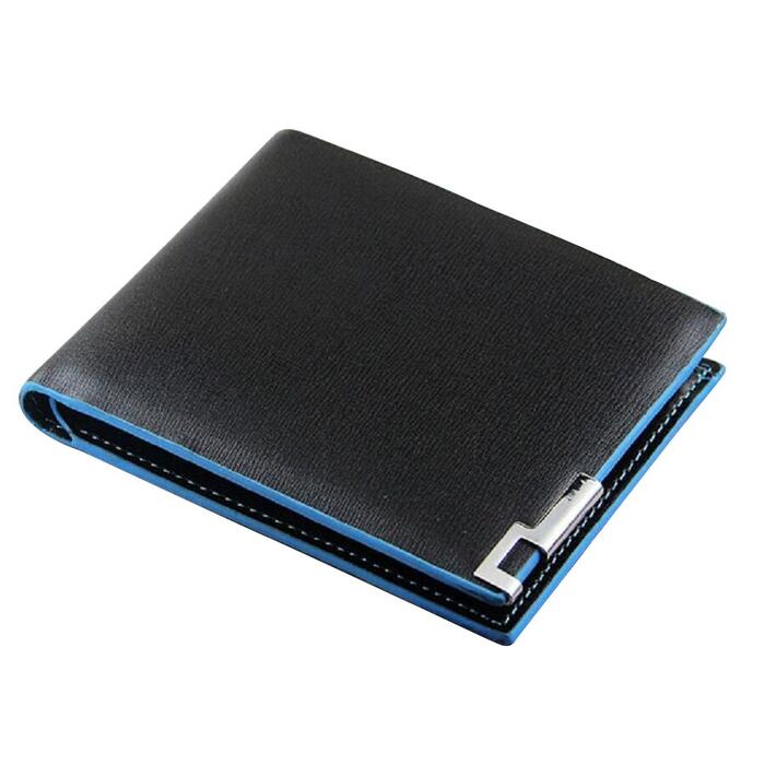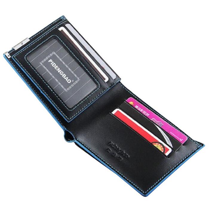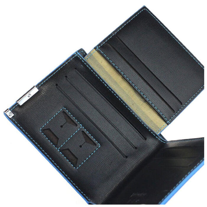 Man Wallet Card Leather Bag Pockets Bifold Money Clip Black Blue
