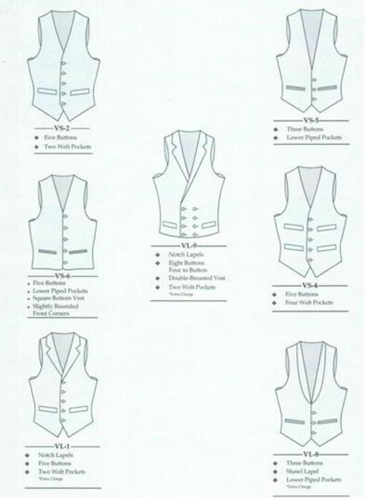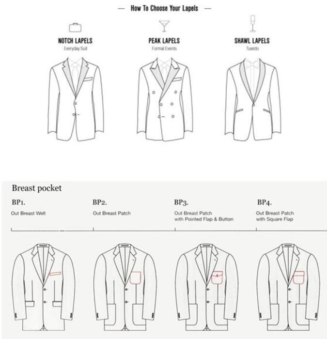 (1) Customers design is welcome. You can give me detailed pictures of the men clothing you like. Then we can make the men suit according to the suit you like. We can custom made all kinds of men suits based on the detailed picture. Free charge to customize according to the above options or other simple adjustment.