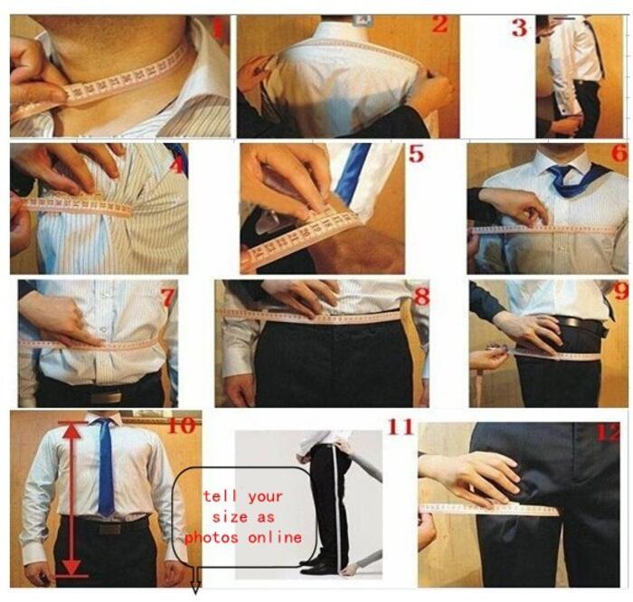 you also can measure your measurements and choose color (defaultas the picture ),and write them on the order remark or you can click “contact now” button ,then send all measurements and color to our factory or click “chat now” button online chat with us when you order the suit or want to us some questions .