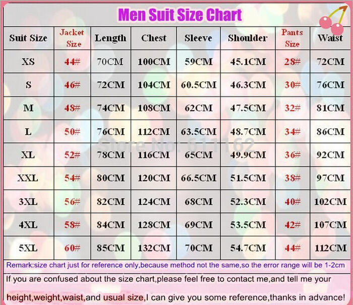 or give us The standard Suits size: (please choose the right size accoridng to your own case on men suit size chart,