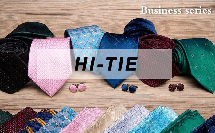 C-3126 Hi-Tie Luxury Silk Men Tie Striped Green Necktie Handkerchief Cufflinks Set Fashion Men s Party Wedding Tie Set 8.5cm
