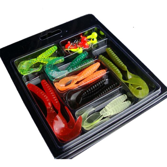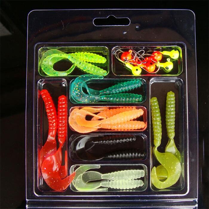 25Pcs Soft Worm Lure Lure Set Head Jig Hooks Fishing Baits Set Tackle