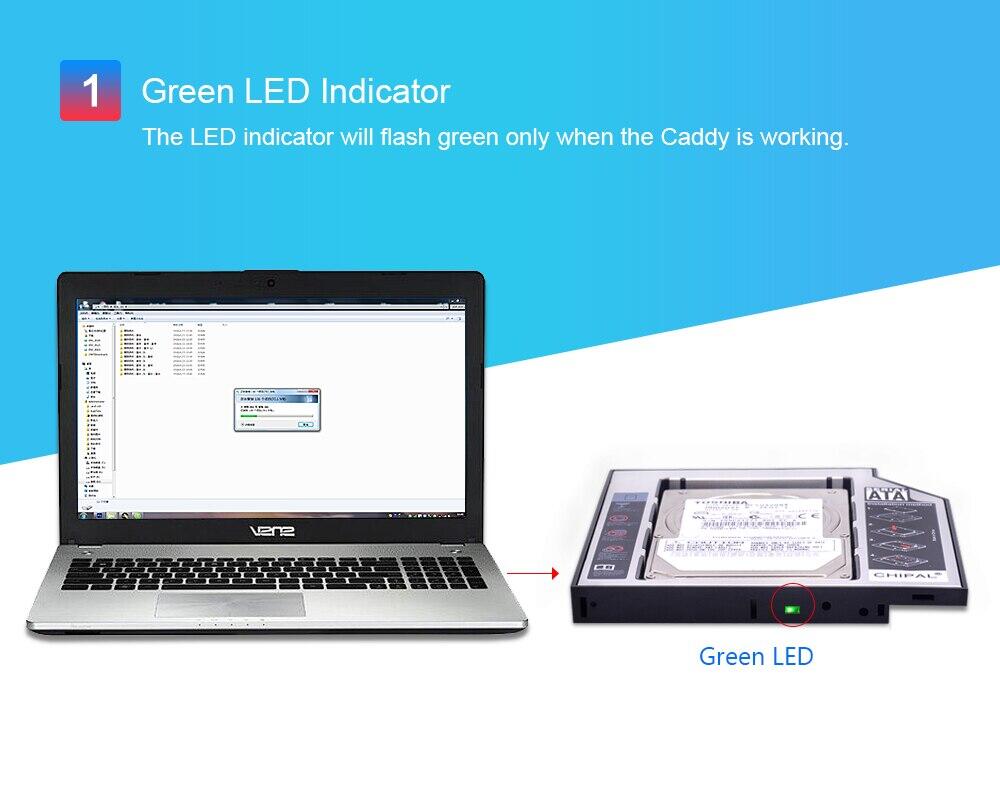 1 review for CHIPAL Second 2nd HDD Caddy 127mm 25 SATA 30 SSD Case Hard Drive Enclosure Adapter LED for Laptop CDROM DVD ROM Optibay