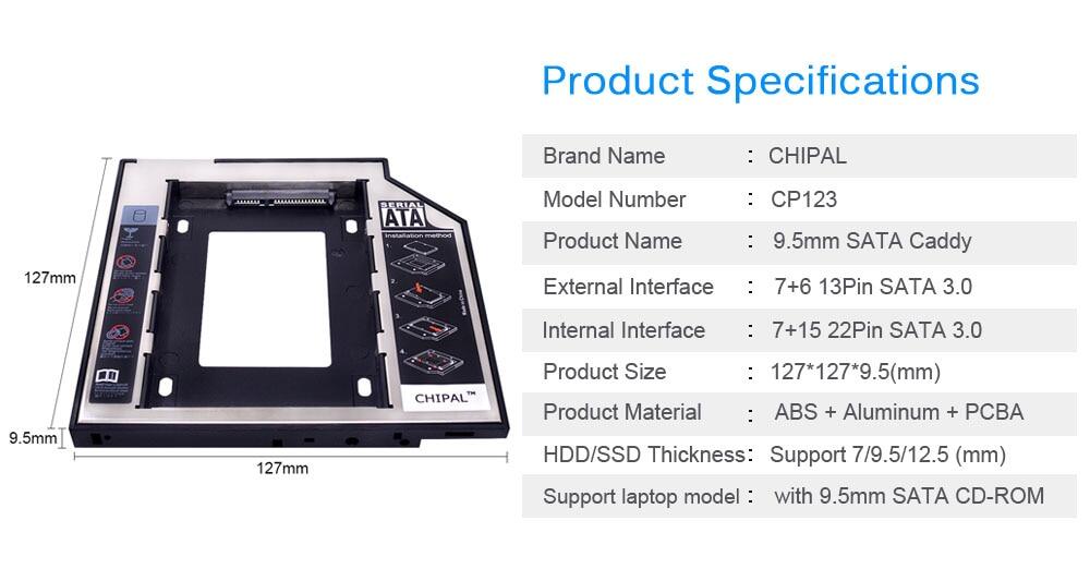 The Universal SATA-to-SATA Caddy is compatible with laptops that has a 9.5mm-thick / high optical bay with a SATA interface.