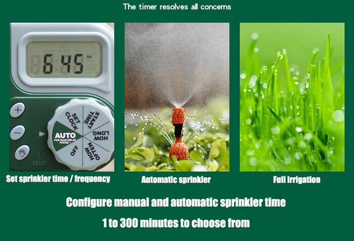 2. Simple operation: Customize the watering time you need by rotating the disk, and manually switch the automatic or manual water spray mode.