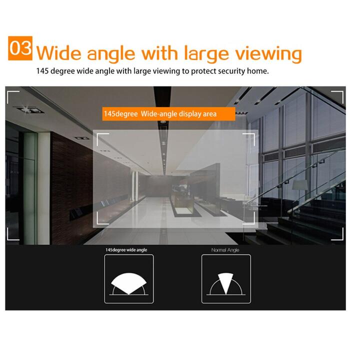 Item specifics Brand Name: DANMINI Feature:Photograph Item Type: Video Doorbell Communication Interface: Wired Display: Color Power: Dry battery Itercom: No Alarm: Yes Viewing Angle: 145 degrees wide wide angle