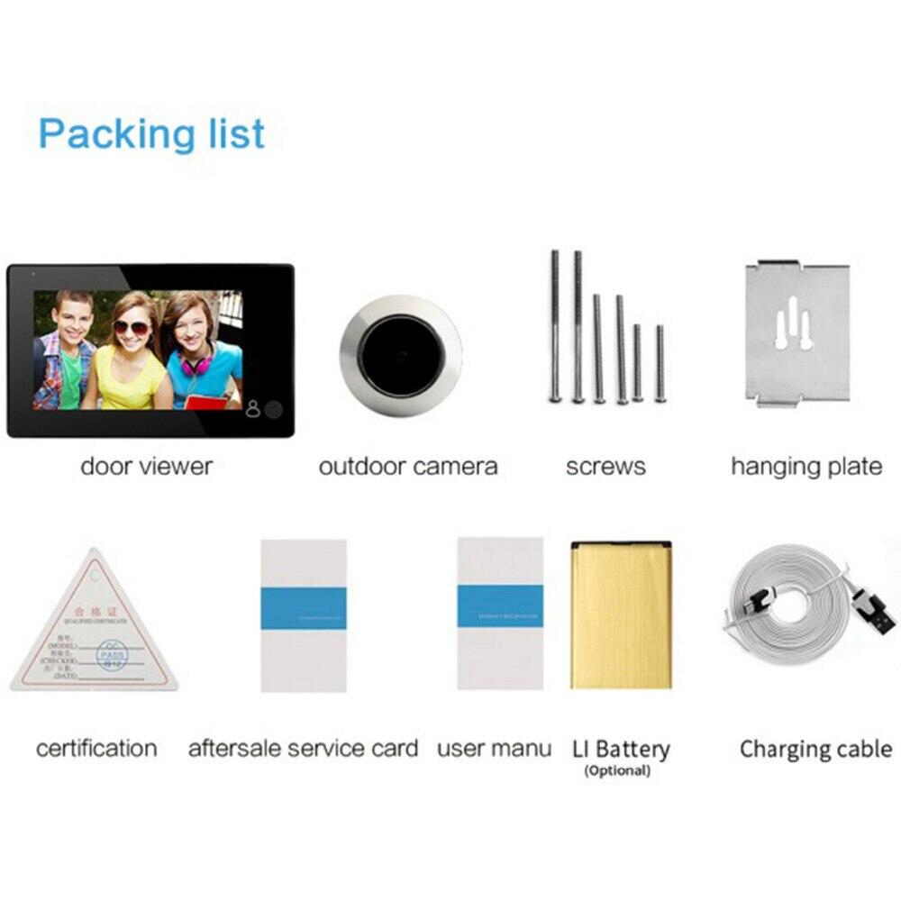 Storage: Not support Package Weight: 0.4kg (0.88lb.) Package Size: 20cm x 13cm x 9cm (7.87in x 5.12in x 3.54in) Product features: 4.3 inch high-definition display 2 million professional security camera Metal material prying cat eye head 145 degrees wide wide angle 1800mA lithium battery; easy to use and convenient. Support USB and mobile power supply. Sdoor hole range 15-25MM Energy saving technology, automatic standby Akey to wake up function to watch, easy to operate