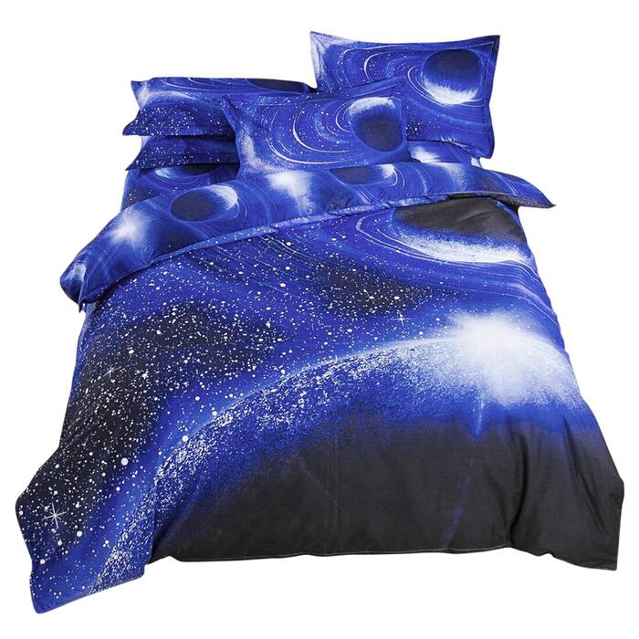 Type:Comforter Set Features: Machine Washable at 40 Centigrade Temperature There is no comforter inside the Duvet. There is a zipper on the duvet cover, you can put your own comforter or quilt in. Size :1Pc Quilt Cover:200 x 230 cm/78.74 x 90.55 inch (Without Comforter);2PcPillowcases:48 x 74 cm/18.90 x 29.13 inch (Without Insert).Type:Comforter SetFeatures: Machine Washable at 40 Centigrade TemperatureThere is no comforter inside the Duvet.There is a zipper on the duvet cover, you can put your own comforter or quilt in.Size :1Pc Quilt Cover:200 x 230 cm/78.74 x 90.55 inch (Without Comforter);2PcPillowcases:48 x 74 cm/18.90 x 29.13 inch (Without Insert).Features:Easy careSoft fabric will bring you comfortable feelingZip closureElegant design and choice, great choice for your bedroom Care Instructions:Gentle machine wash separately before useDo not soakDo not bleachDo not tumble dryWarm iron if requiredDo not dry clean3D technology into life, in the Galaxy Sky Cosmos Night Pattern Theme, give you feel the immersive shock.Great decor for your bedroomColor:Navy blueMaterial:50% Cotton,50% PolyesterPackage Content:1 x Duvet Cover 2 x PillowcasesNote: Light shooting and different displays may cause the color of the item in the picture a little different from the real thing. The measurement allowed error is +/- 1-3cm.