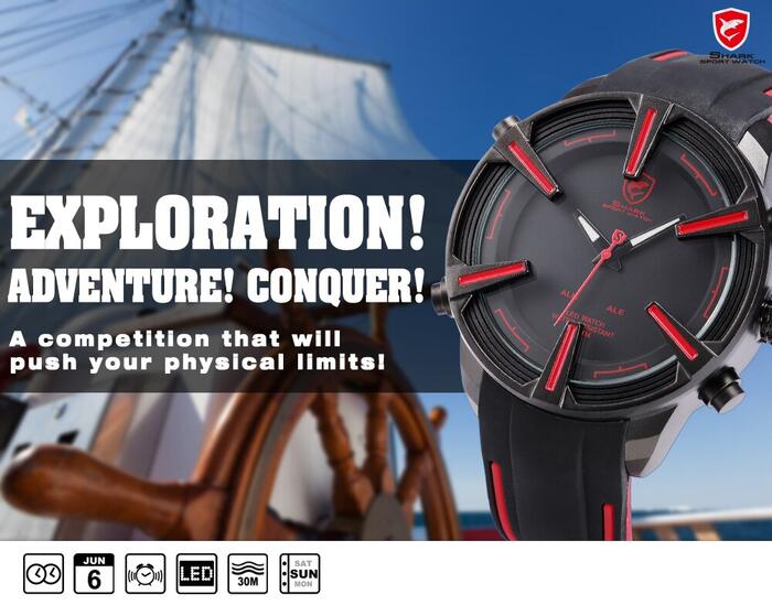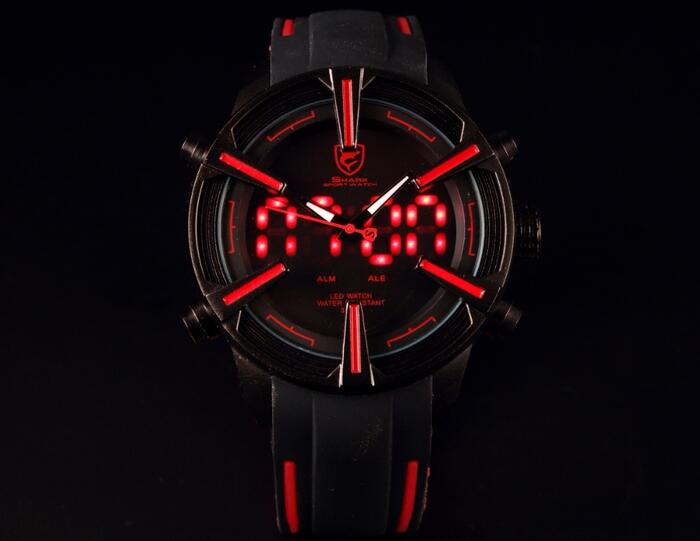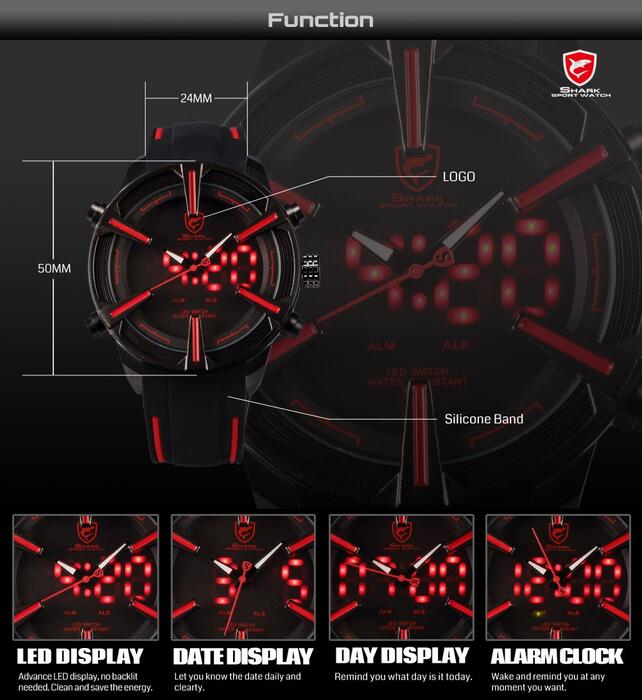 HomeJewelry WatchesMens WatchesDual Display WatchesDogfish SHARK Sport Watch Hot Digital Red LED Calendar Alarm Military Mens Fashion Silicone Strap Wristwatches Clock Gift SH384