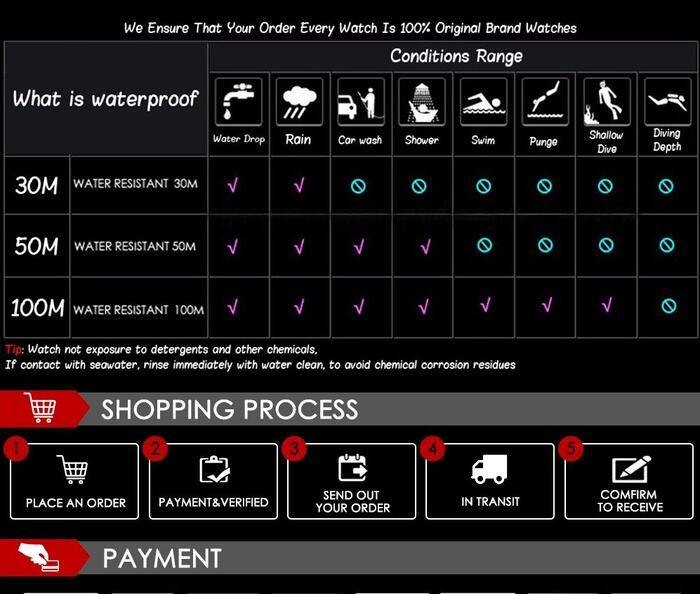 Water Resistance Depth: 30m, 3ATM Water Resistant Waterproof