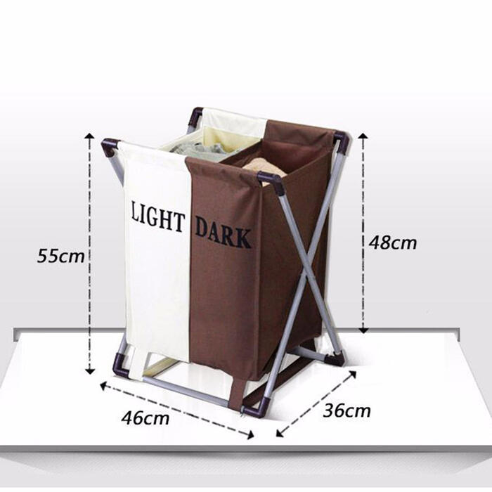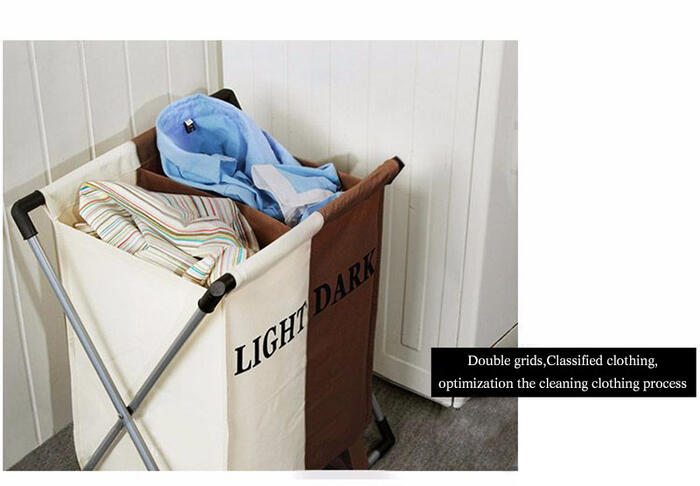 Eworld Laundry Basket Dirty Clothes Separated Two Grids Foldable Basket Necktie Socks Bag Waterproof Oxford Bathroom Storage Box