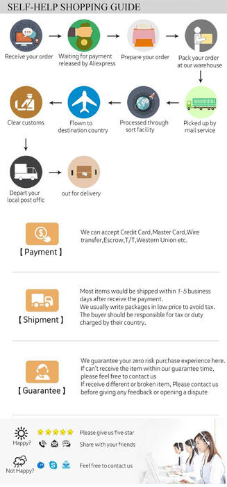 1) We accept Ali West Union, TT, PP and payment processor ESCROW. 2) Payment must be made within 7 days of order. Return & Refund 1) You have 7 days to contact us and 30 days to return it from the date it was received. If this item is in your possession more than 7 days, it is considered used and WE WILL NOT ISSUE YOU A REFUND OR REPLACEMENT. There are NO EXCEPTIONS! Shipping cost will be at buyer’s cost. 2) All returned items MUST BE in the original packaging and you MUST PROVIDE us with the tracking number, specific reason for the return, and your order number. 3) We will refund YOUR FULL WINNINNG BID AMOUNT except cost, upon receipt of the item in its original condition and packaging with all the components and accessories included.