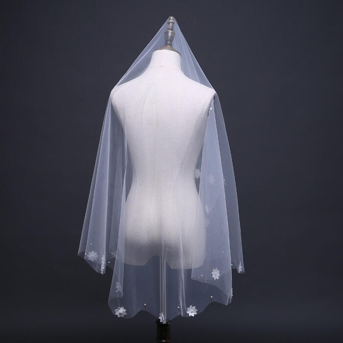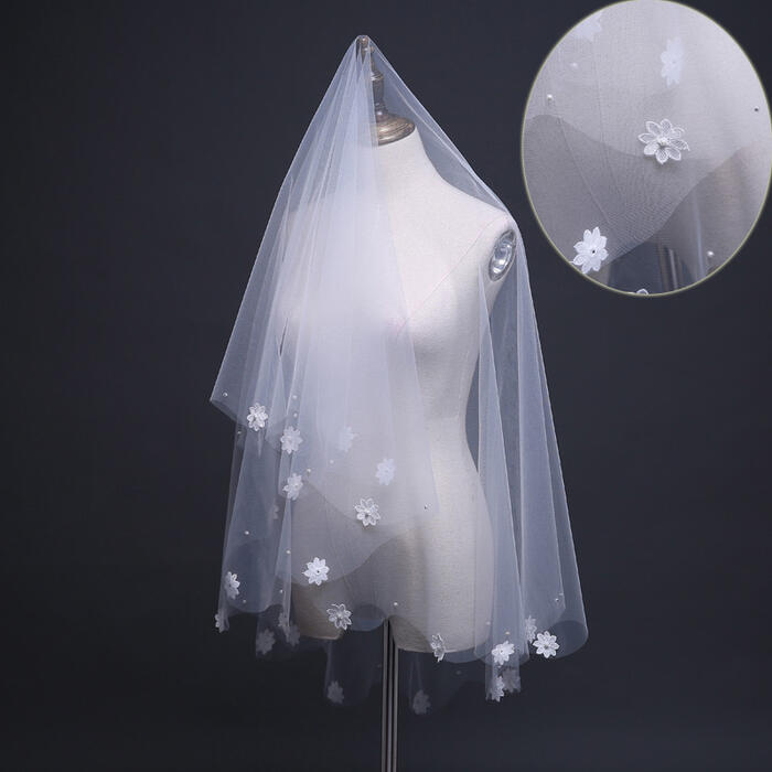 1pc Wedding Veil Chapel Cathedral White Elegent Short Pearl Veil Lace Bridal Veils Wedding Veil with Hair Comb
