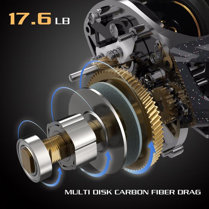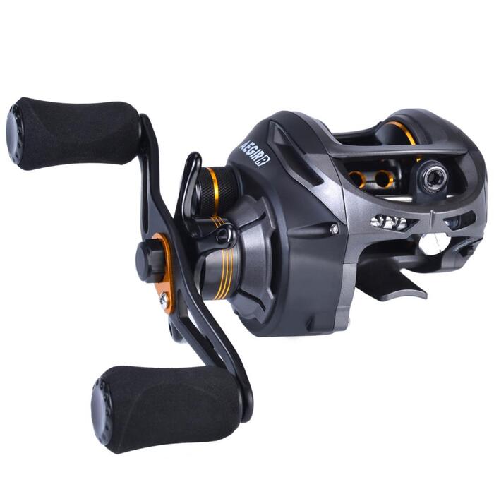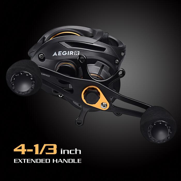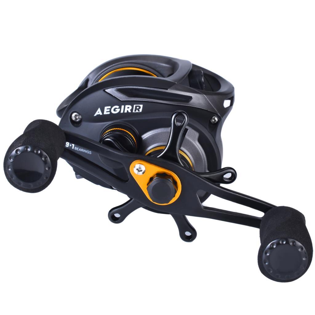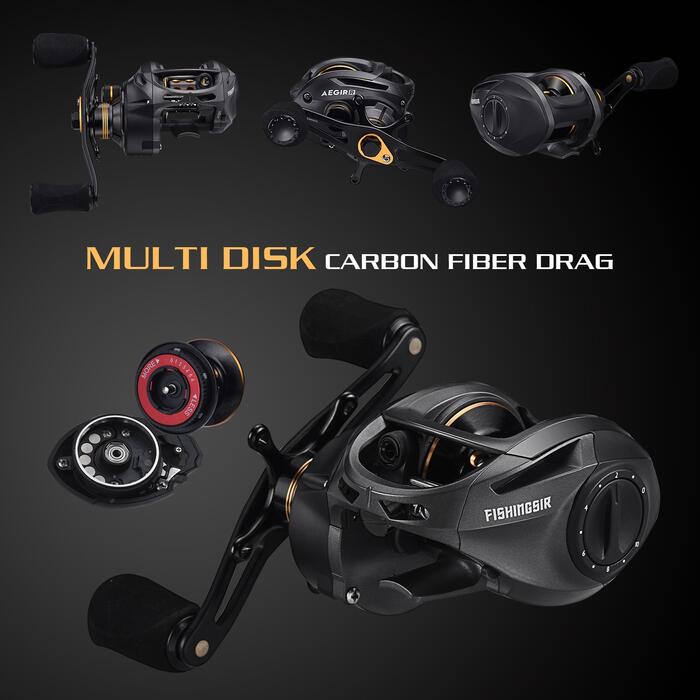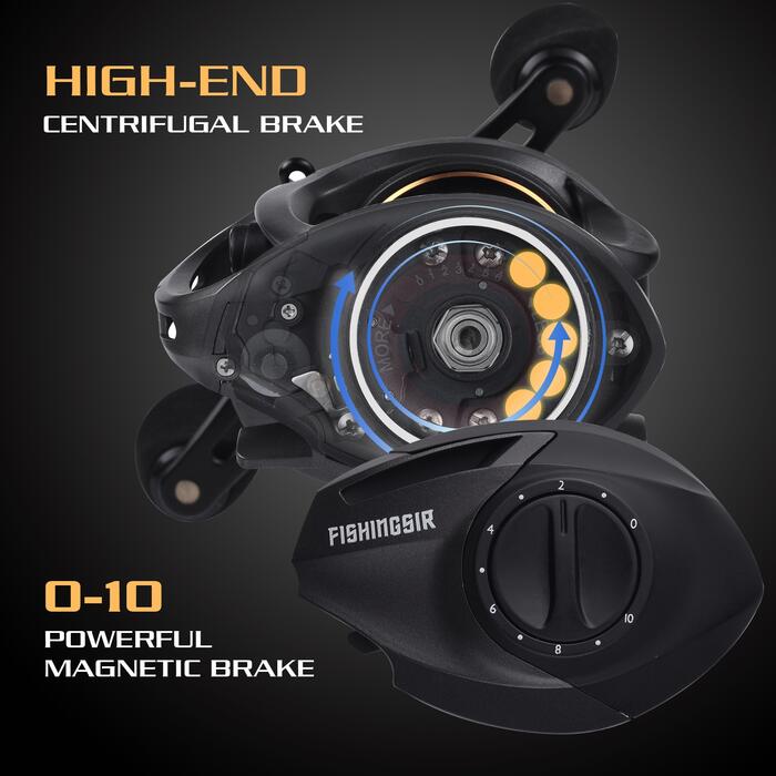 * FishingSir s AEGIR casting reel is sure to please any angler who engages the bail. High-grade reinforced graphite body with machined-and-aluminum spool, super low profile, lightweight design. * Silent high speed 7.1:1 line retrieve and 9+1 bearing system provide ultimate smooth performance. Advanced drag system constructed with carbon fiber, stainless steel and offer 17.6lbs drag power. * Hard brass drive gear provides the torque needed to pull big fish out of cover. Aluminum 110mm (4-1/3 in) extended handle with high-density EVA knobs. Top quality and durable gear you expect for baitcaster. * The new FishingSir s AEGIR bait caster features dual brakes with quick, easy to fine tune 0-10 powerful magnetic brake and high-end centrifugal brake, a tournament ready casting reel for all anglers. * Double-anodized, ported, machined-aircraft-aluminum spool offers maximum strength while reducing weight. It is a perfect reel to choose, we are proud to present the Worry-Free one year warranty to you!