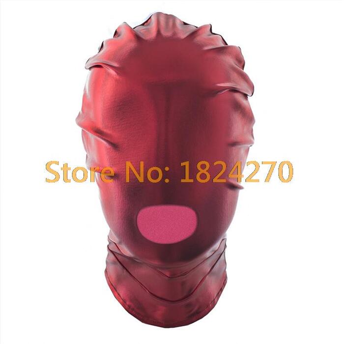 Faux Leather Latex Fetish Mask Open Mouth Sexy Mask Spandex Head Bondage Hood Sexy Costumes Erotic Toys Black Red 2017 Hot New