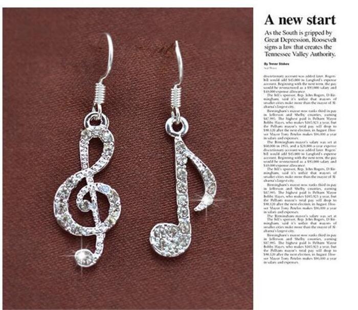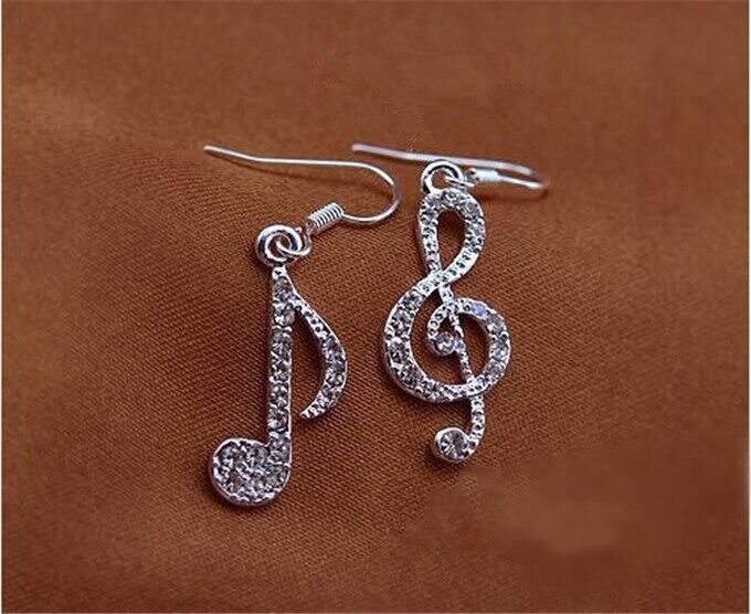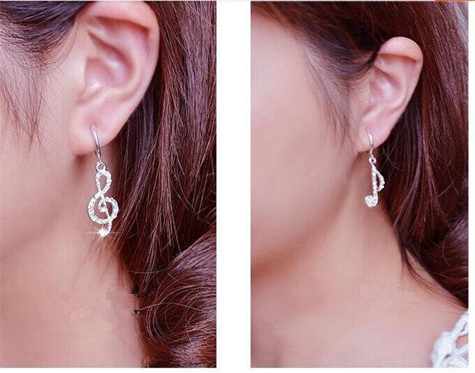 Hot Personality Geometric Music Dream Symbol Asymmetric Earrings Music Notes Ear Hook Crystal Silver Color Earrings for Women
