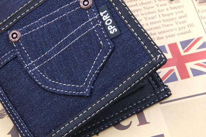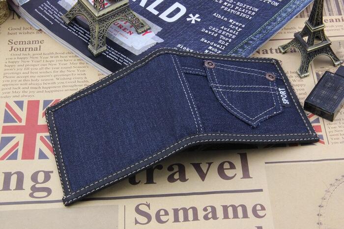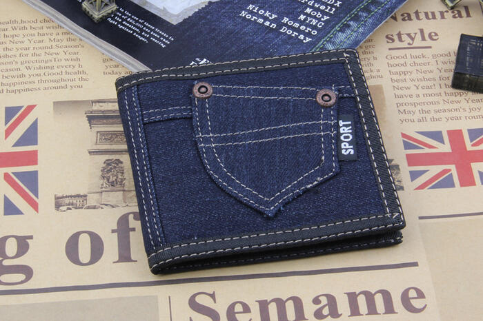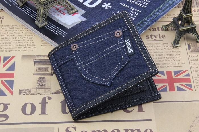 men / women Wallets 2016 New Wholesale Retro Hot sale 3 Folding Solid Canvas denim jeans Short zipper money clip Purse Vintage