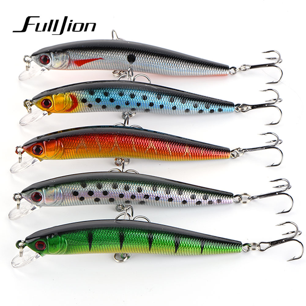 Fulljion 5pcs/lot 9.5cm 8.7g Fishing Lures Wobblers Minnow 6# Hooks 3D Eyes Crankbaits Artificial Hard Baits Pesca