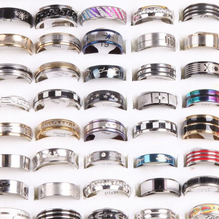 HomeJewelry WatchesWedding EngagementEngagement RingsWholesale 50pcs Mixed style Stainless Steel Rings Mens Womens Fashion jewelry lots wedding anniversary band party gifts